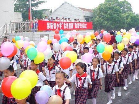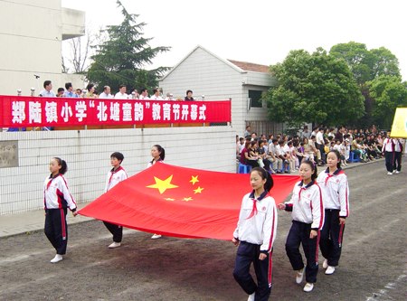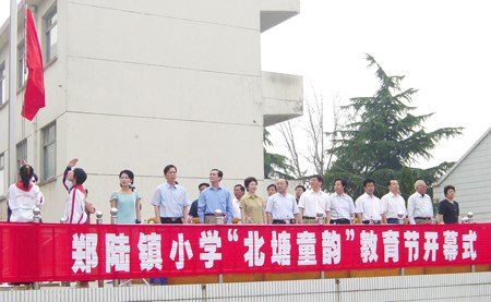 岁岁六一,今又六一。六一是全世界少年儿童最快乐的日子。在郑陆中心小学,今年的六一,却与往年大不相同。因为这一天学校正隆重举行为期一天的“北塘童韵”教育节。校园内张灯结彩,彩旗猎猎,一派喜庆的气氛。孩子们身着节日的盛装,张开灿烂的笑脸,载歌载舞,迎来了我们尊敬的客人——国家督学,原省教育科学研究所所长成尚荣先生;迎来了区关心下一代工作委员会主任徐克兴,区委办公室主任吕骏,区妇联主席刘瑞英,区教育局局长朱建康,区政府办公室副主任陶小伟等领导;更令人激动的是,我们还迎来了区四套班子杨建、杨锡根、冷培清、张美等各位领导。