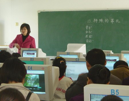 上午,与会者先听了两堂精彩纷呈、亮点多多的课题研究课——1.周刚教师执教的《圆的周长》,这堂课体现了网络环境下 “以学生为中心的”课题思想;2.蔡红老师执教的《特殊的葬礼》,该课体现了网络环境下的开放互动式的思想;然后,由钱国云校长代表学校致欢迎辞,并且精彩地从“点、线、面、体”四个方面介绍了学校现代教育技术的开展情况