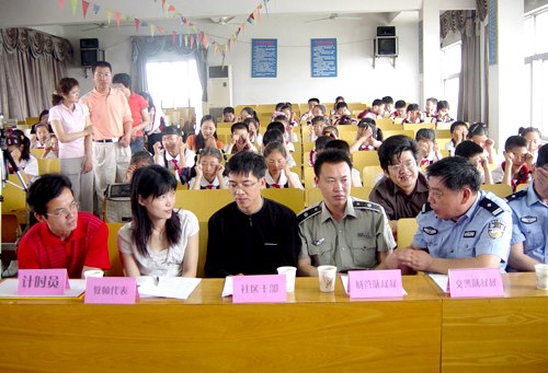 我校的公民教育实践活动也得到社会各部门的支持,学生们根据班级小组的研究问题,需要走访社区委员会、政府机关、报社、图书馆、向市民发放问卷调查,在听证会上学校请来了社区干部、城管干部、公安干警、人大代表等来自各方面的社会人士担任听证员,他们细心听取了学生对所研究问题的陈述,并针对学生的陈述提出质疑,当学生解答后,听证员及时给予高度评价。