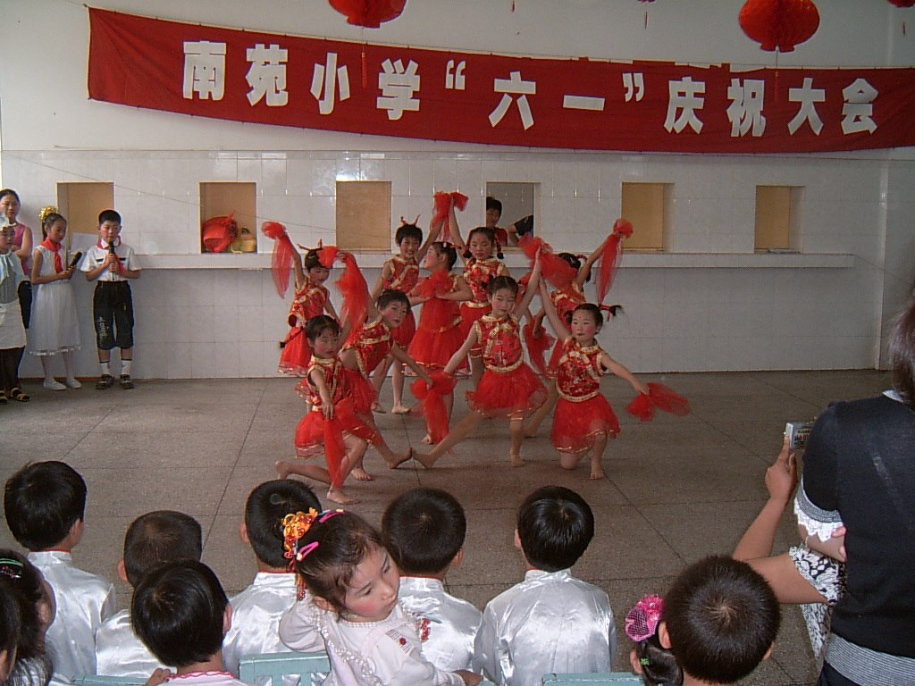 5月31日上午南苑小学举行了"六一"庆祝活动,场内热闹非凡,孩子们的脸上洋溢着喜气,充满着欢乐,一个个精彩的节目时时博得热烈的掌声。