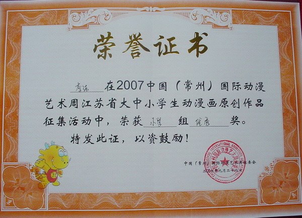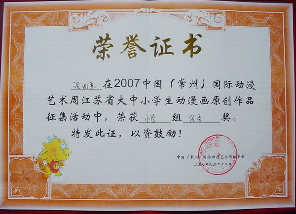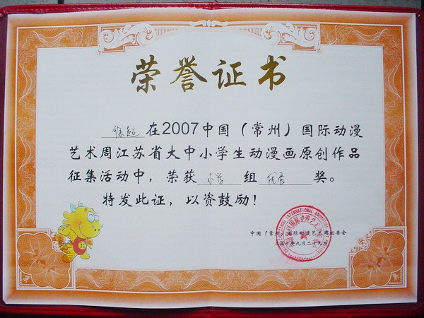 我校有三位同学在2007中国(国际)动漫艺术周作品征集中获奖