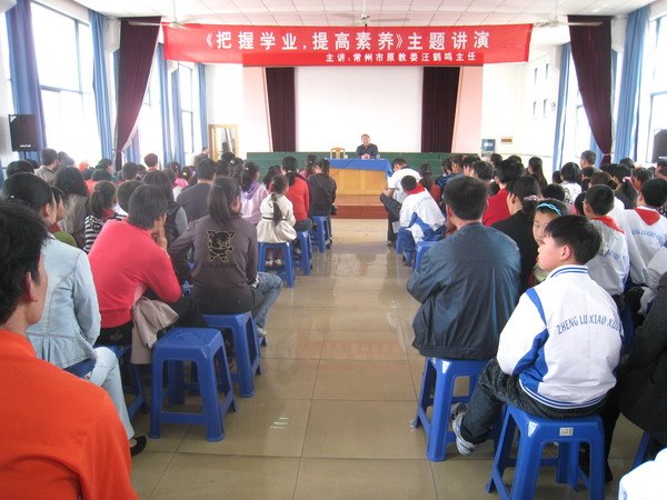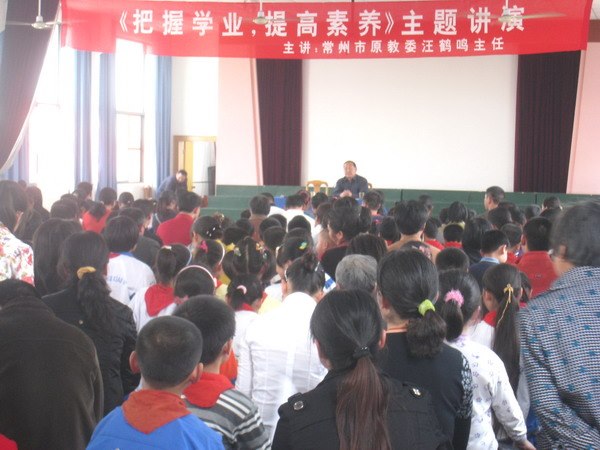 生机盎然,春满校园。4月28日下午,郑小四年级全体学生和家长一起聆听了特殊的一课,江苏省督学汪鹤鸣先生为家长学校授课,作了题为《把握学业 提高素养》的精彩报告。汪老以交流家教心得切入,亲切平实,娓娓道来,从树立学习目标、培植学习信心、教授学习方法、培养学习习惯等几个方面,与家长们分享了许多有益的家庭教育经验,令在座家长受益匪浅。在互动环节,汪老更以浅显的语言,生动的讲解,激起了家长们的共鸣,赢得了阵阵热烈的掌声。