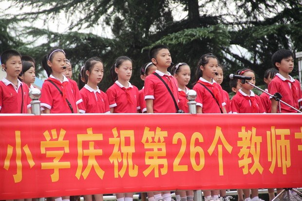 活动在主持人张惠芬校长衷心的祝愿声中拉开了序幕,首先是六年级少先队员为教师节献花献词,他们在这特殊的节日里,用最美的童声道出了对敬爱的老师的感激之情;随后钱国云校长致辞,他热情洋溢地赞赏了郑小的每一位教师,祝福大家节日快乐,同时又殷切地希望教师们能再接再厉,不断创造新的辉煌;接着大会表彰了在2009——2010学年度中表现突出的10位教师,优秀教师代表牟晨娣老师作了发言。最后郑陆镇党委王助理讲话,他说郑陆中心小学虽然办学条件比较艰苦,但是全体教师在钱国云校长的领导下,在各项活动中取得了优异的成绩,一张张奖牌,一名名学科带头人、教坛能手和中学高级教师的脱颖而出,无不说明了这一点,他代表镇政府表示衷心的祝贺和真诚的祝愿,愿教师们节日快乐,身体健康,事业更红火!