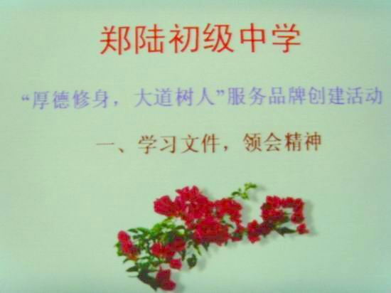 根据武教发〔2008〕12号文件“关于深入开展‘厚德修身,大道树人’服务品牌创建活动的实施意见”要求,郑陆初级中学根据学校实际,把创建活动与师德建设月活动相结合,与开展校本培训、提高师德师能相结合,与完成学校总体工作目标相结合,积极开展“厚德修身,大道树人”服务品牌创建活动。