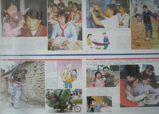 3、举行《自强自立,勇于担当》图片展。学校与有关图片社订购图片,在学校宣传橱窗内展出,并组织学生利用课间进行观看。