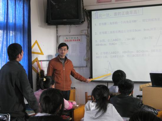 郑陆初中初三数学教研组薛东升、高佳萍、成晓媛三位教师精心准备,为参加活动的同行上了三堂精彩的公开课。课上,三位教师分别应用多媒体课件、小黑板、实物展示台等传统媒体、现代教育媒体,激发了学生的学习热情,增大了课堂复习容量,提高了复习效果。他们精选例题,举一反三,基于教材,超越教材,所上课可圈可点,受到听课者的好评。